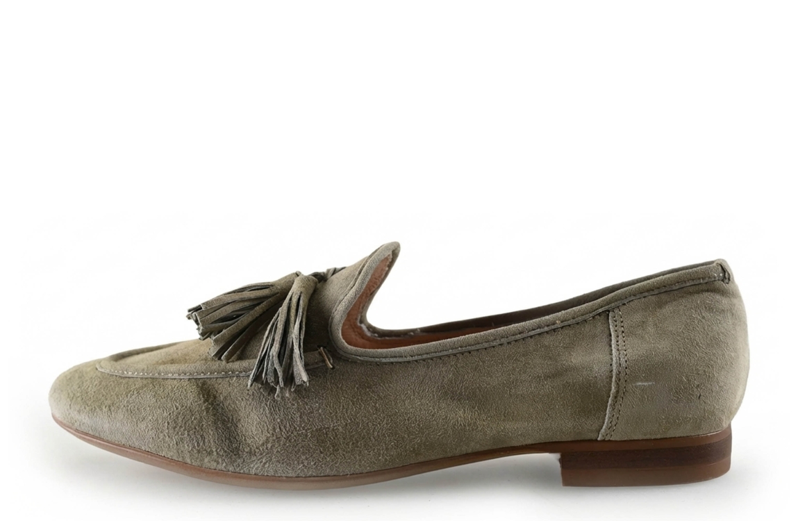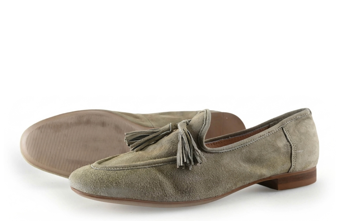 De schoen heeft zichtbare gebruikssporen. Denk hierbij aan een krasje of een pasplooi in het leer. Jij profiteert tot 70% korting op de verkoopprijs.